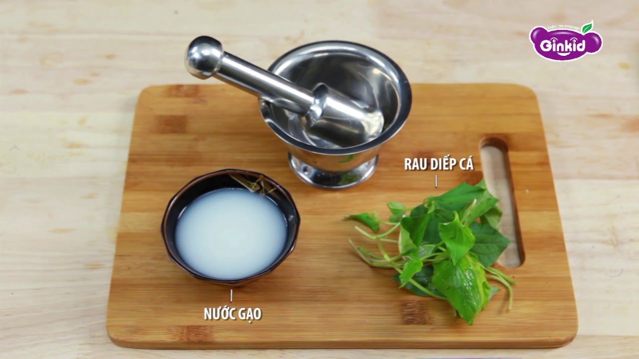 Mẹ chuẩn bị từ 5 – 10 lá diếp cá tươi cùng 1 chén con nước vo gạo. Lá diếp cá rửa sạch, giã nhuyễn sau đó thêm nước vo gạo vào, khuấy đều hỗn hợp rồi bắc lên bếp đun khoảng 20 phút. Hỗn hợp sau khi sôi mẹ tắt bếp, để nguội, lọc lấy nước rồi cho trẻ uống 2 – 3 lần mỗi ngày trong vòng 3 ngày.